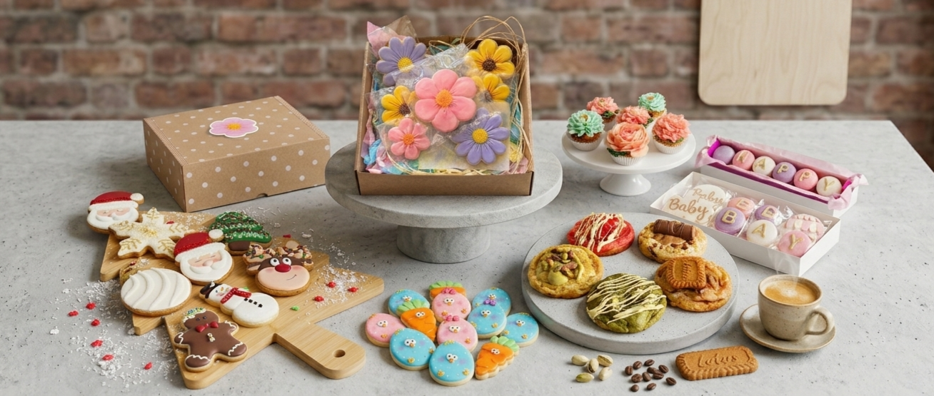 Eine fröhliche Auswahl an handverzierten Zucker-Keksen, exklusiv für Ostern kreiert – mit dekorierten Eiern, schlüpfenden Küken, verspielten Möhren-Figuren und festlichen Frühlingsfarben. Ein herrlicher Leckerbissen für Osterkörbchen oder saisonales Verschenken. Wir kreieren auch Sondereditions-Kekssets für andere Feiertage – Muttertag, Kindertag, Weihnachten, Nikolaus, Valentinstag und mehr. Folgen Sie uns, um über neue Editionen informiert zu bleiben!
